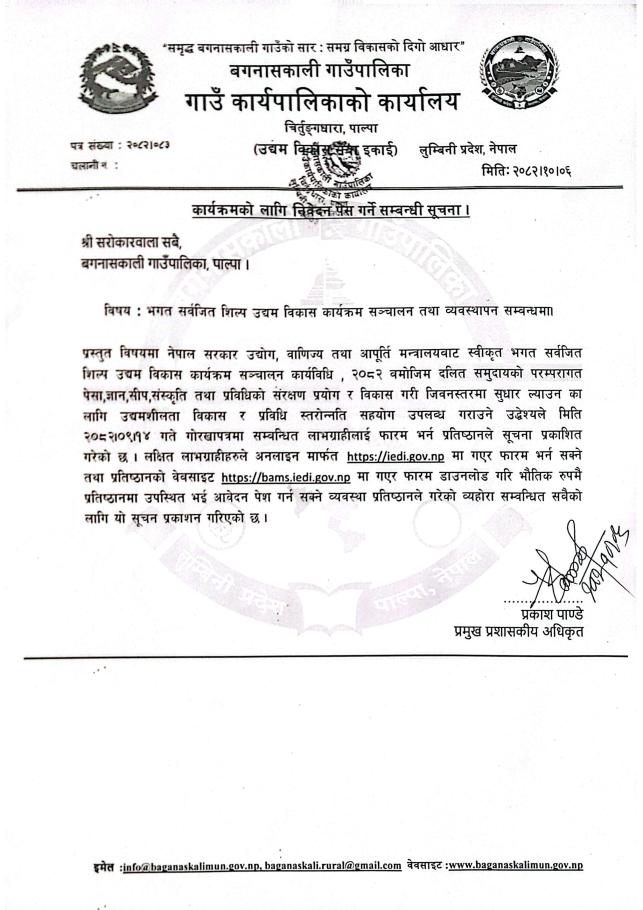 Home » कार्यक्रमको लागि निवेदन पेश गर्ने सम्बन्धी सूचना ।।