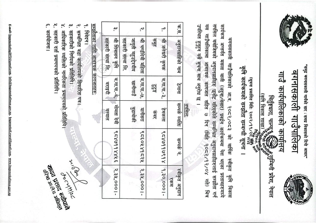 | बगनासकाली गाउँपालिका मेला महोत्सव संचालन कार्यविधि २०८२ | 01/28/2026 - 12:25 |