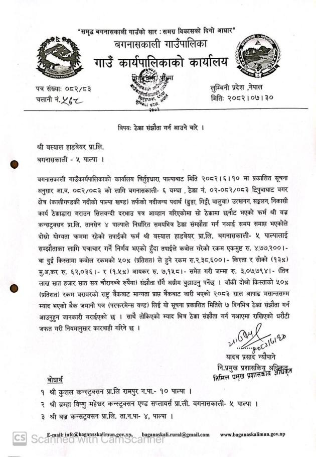 ठेक्का संझौता गर्न आउने सूचना ।