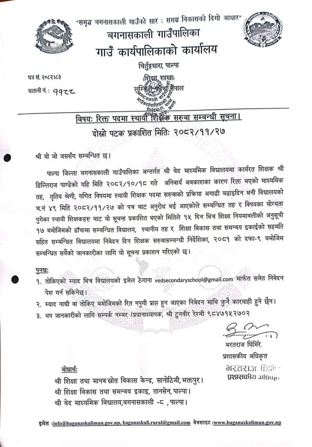 Home » रिक्त पदमा स्थायी शिक्षक सरूवा सम्बन्धी सूचना ।