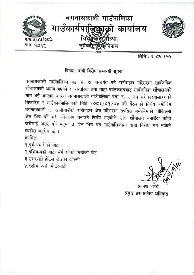 Home » दाबी विरोध सम्बन्धी सूचना ।