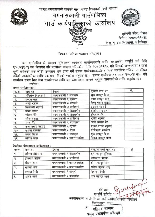 अन्तिम नतिजा प्रकाशन गरिएकाे सूचना