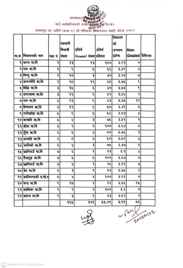 आधारभूत तह (कक्षा ८) उत्तीर्ण परीक्षाको नतिजा प्रकाशन सम्बन्धी सूचना ।