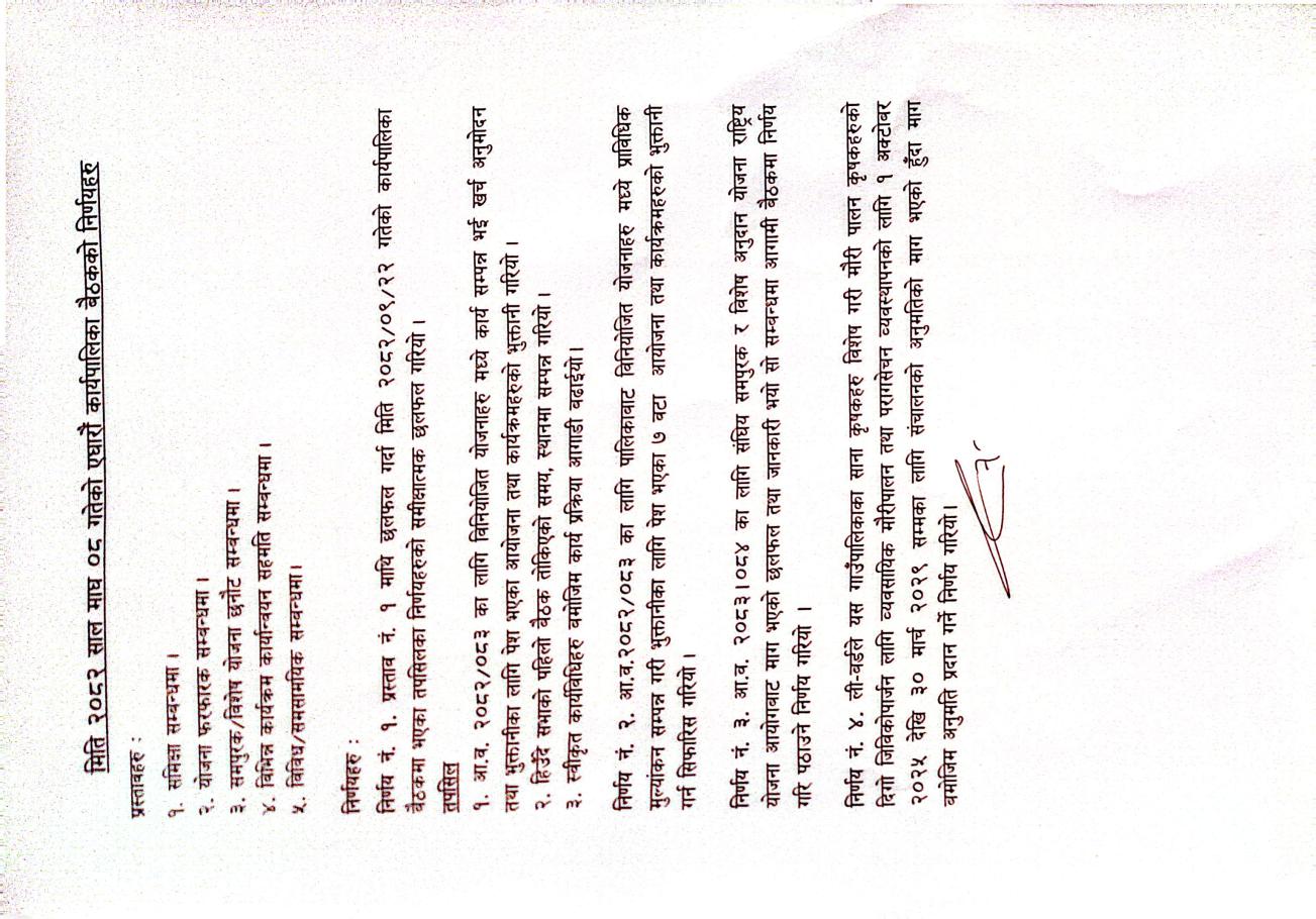 आ.व. २०८२/८३ काे ११ औं कार्यपालिका बैठककाे निर्णय (२०८२/१०/०८ गते)