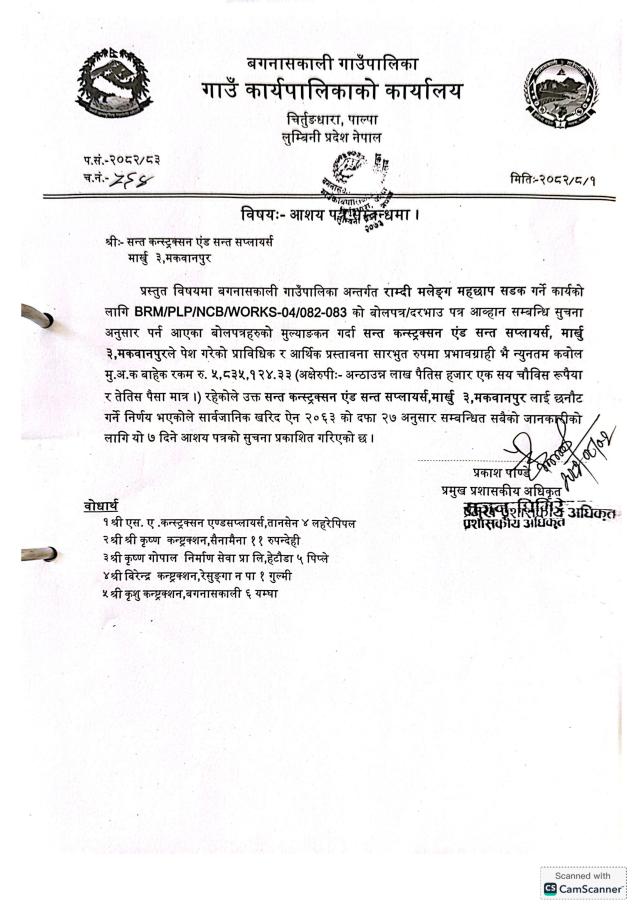 आशय पत्र सम्बन्धमा ।
