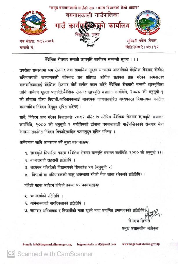 वैदेशिक रोजगार सन्तती छात्रवृत्ति कार्यक्रम सम्बन्धी सूचना
