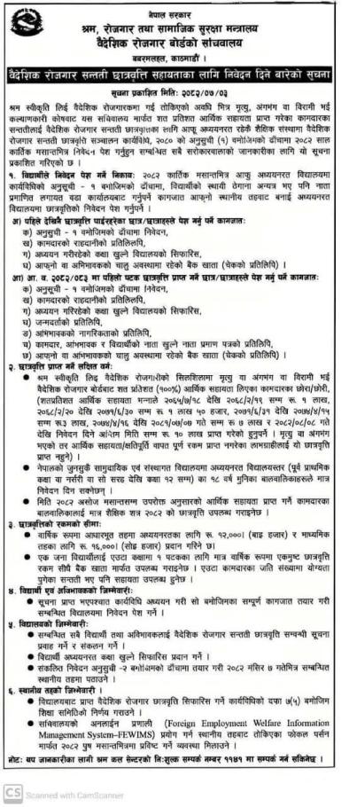 Home » वैदेशिक रोजगार सन्तती छात्रवृत्ति कार्यक्रम सम्बन्धी सूचना