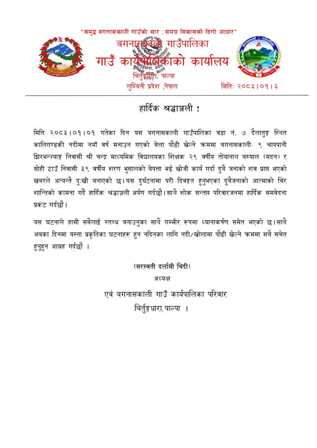 | बगनासकाली गाउँपालिका मेला महोत्सव संचालन कार्यविधि २०८२ | 01/28/2026 - 12:25 |