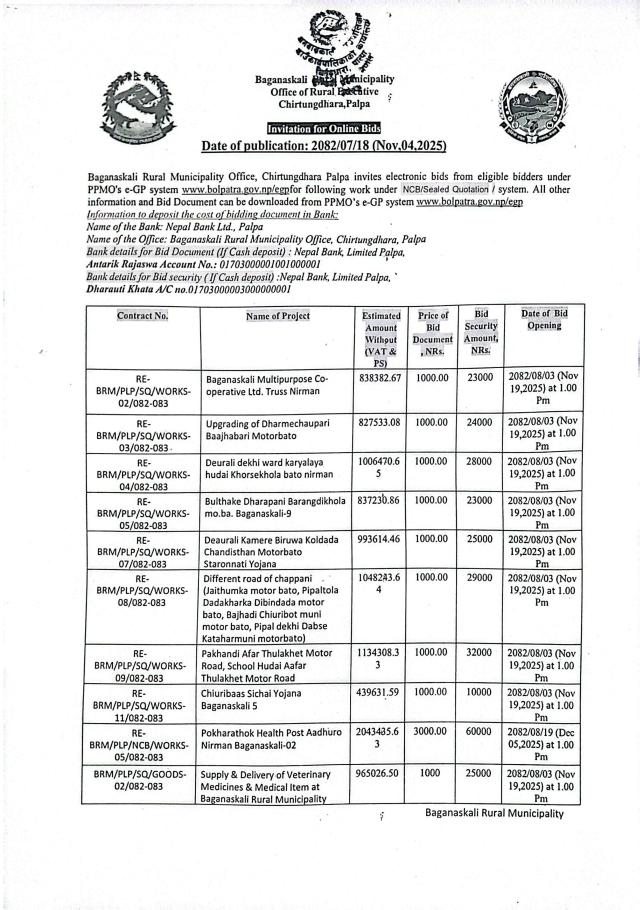सार्वजनिक खरिद/बोलपत्र सूचना