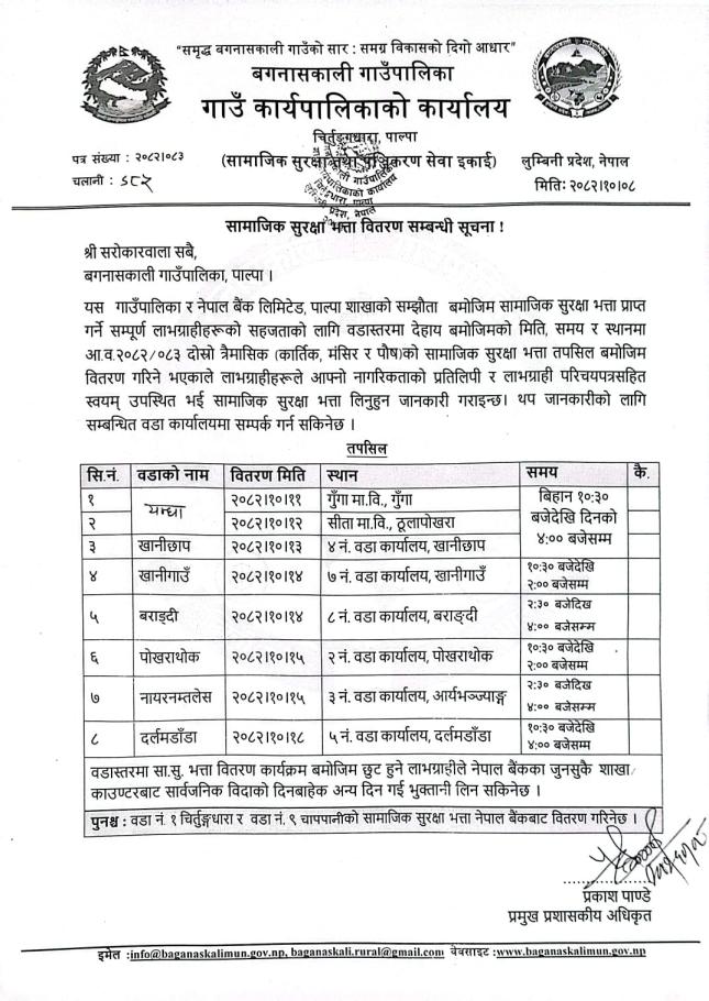 वडा कार्यालयबाट सामाजिक सुरक्षा भत्ता वितरण सम्बन्धी सूचना ।