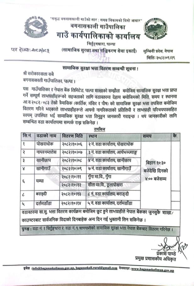 वडा कार्यालयबाट सामाजिक सुरक्षा भत्ता वितरण सम्बन्धी सूचना ।