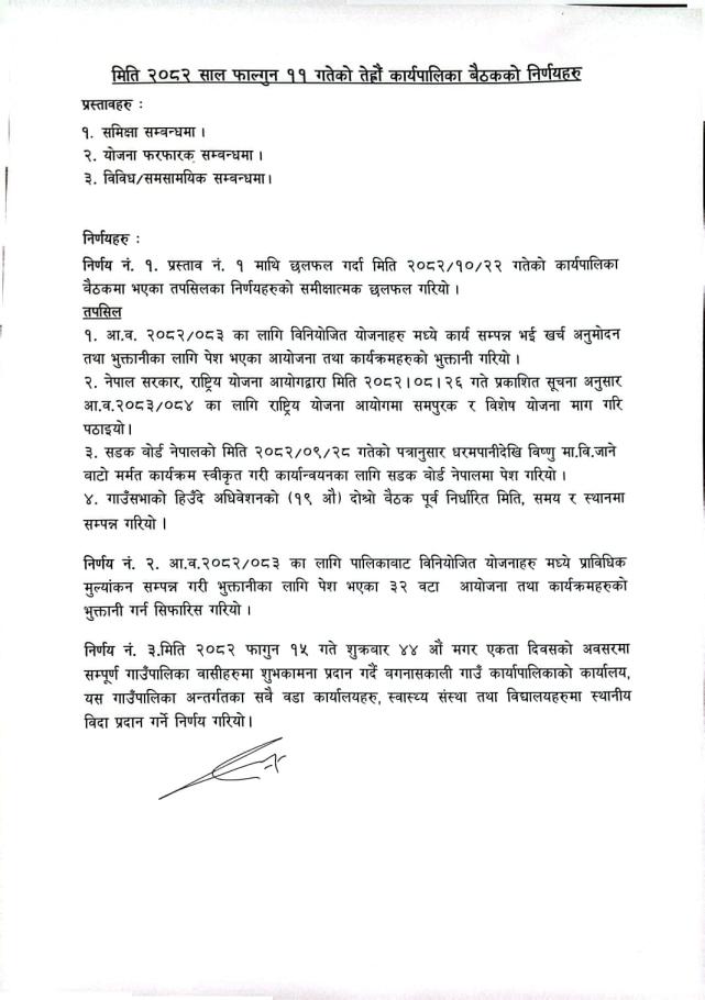 आ.व. २०८२/८३ काे १३ औं कार्यपालिका बैठककाे निर्णय (२०८२/११/११ गते)