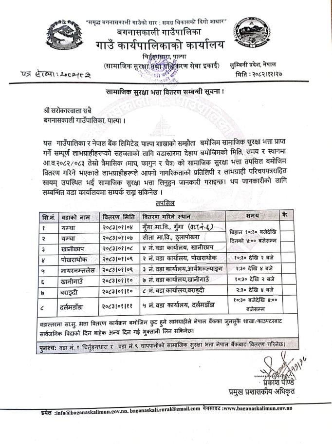 सामाजिक सुरक्षा भत्ता वितरण सम्बन्धी सूचना ।