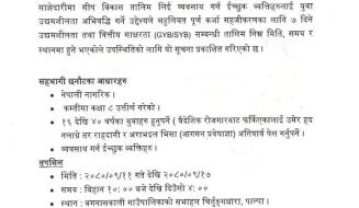 उद्धमशिलता तथा वित्तीय साक्षरता (GYB /SYB) तालिममा सहभागी हुने सम्बन्धी सूचना